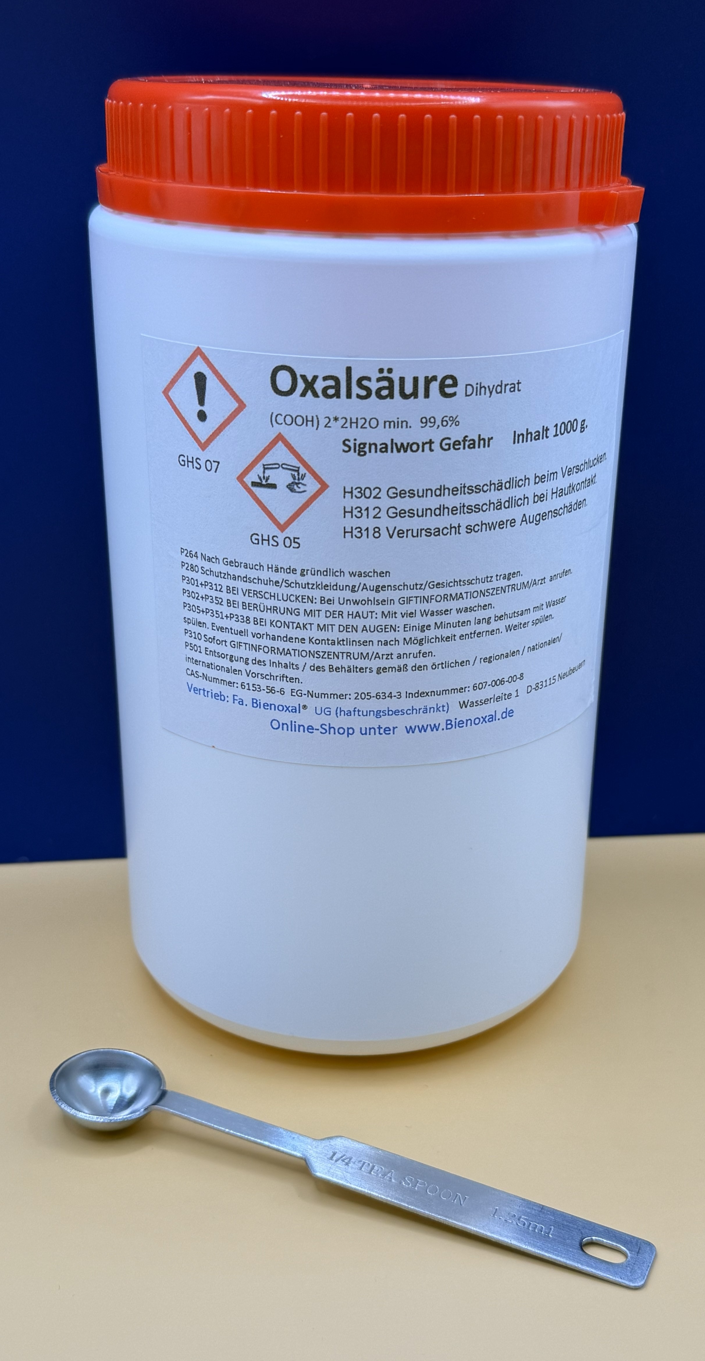 1000 grams of oxalic acid incl. 1 measuring spoon made of stainless steel 99.6% technical oxalic acid dihydrate