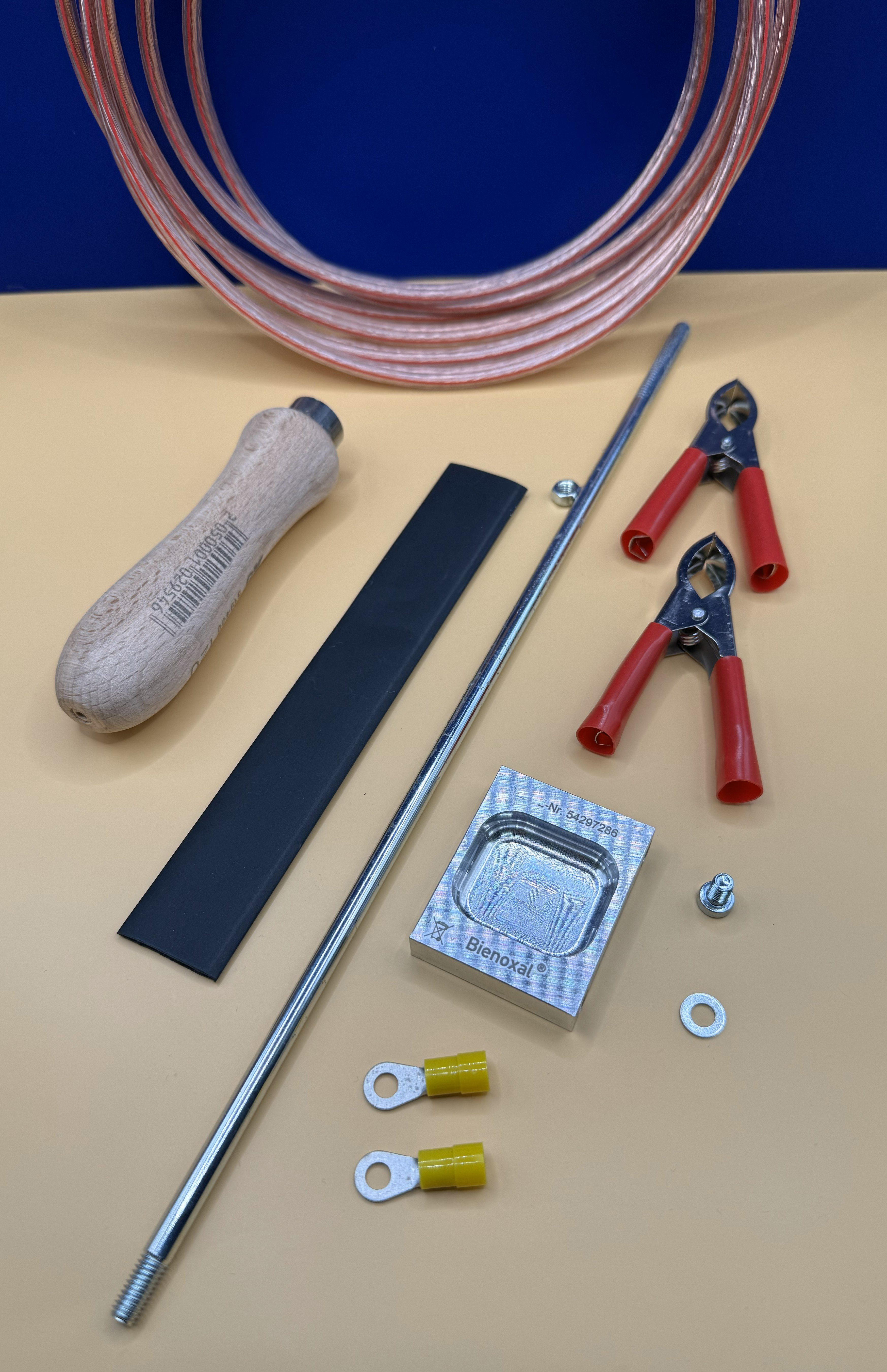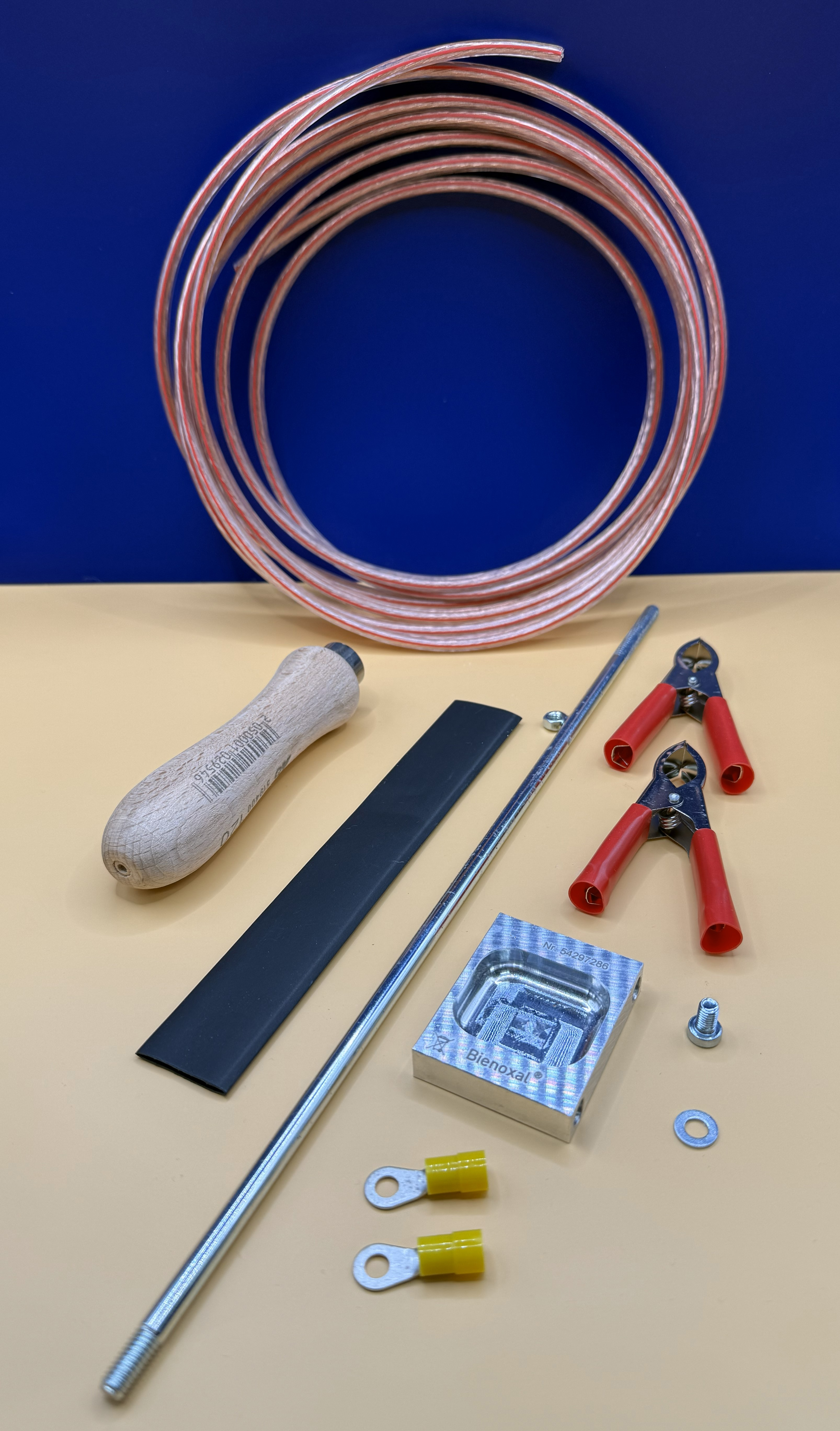 is about 3.5 meters long and has large battery terminals.